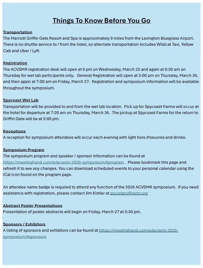IMPORTANT UPDATE: The 2026 ACVSMR Symposium has been approved for up to 27.5 hours of CE Credit. CE Program No. 20-1353817